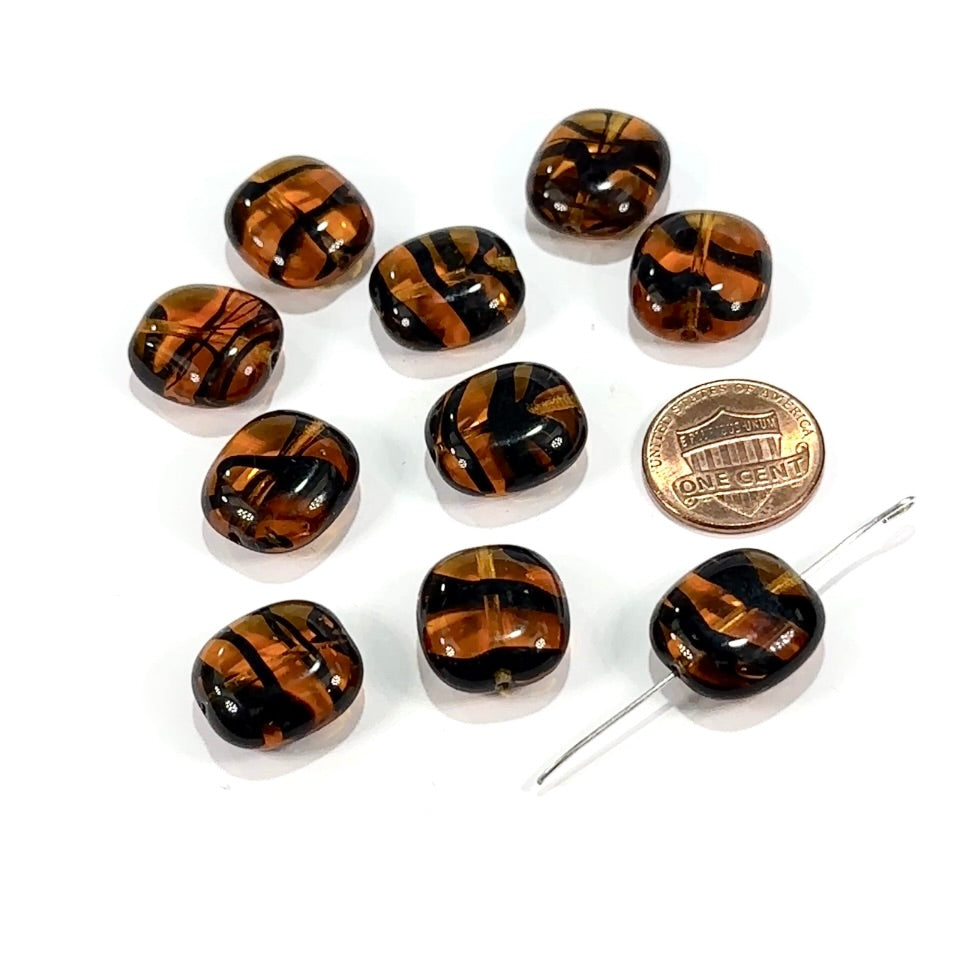 Czech Pressed Druk Table Cut Oval Smooth Glass Beads 17x15mm Brown Tortoise 10 pieces CL1003