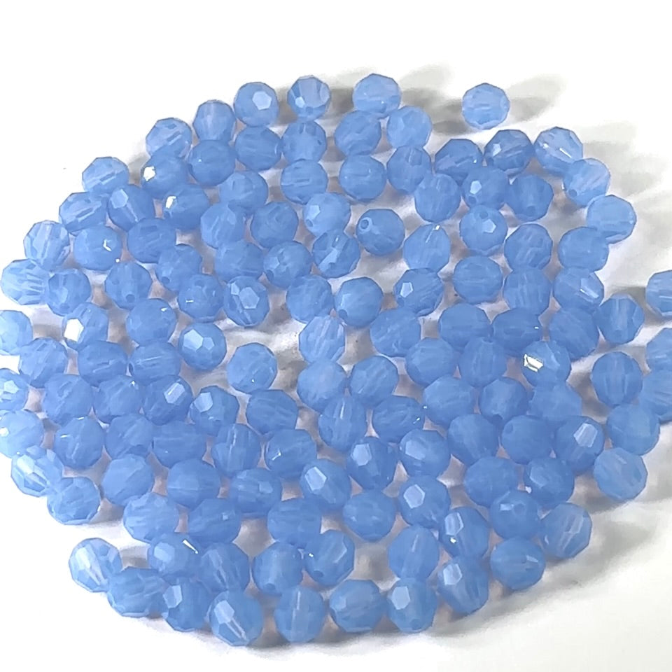 Sky Blue Opal Czech Machine Cut Round Crystal Beads Milky Light Baby Blue (Light Sapphire Opal) 6mm or 8mm Rosary Size Beads