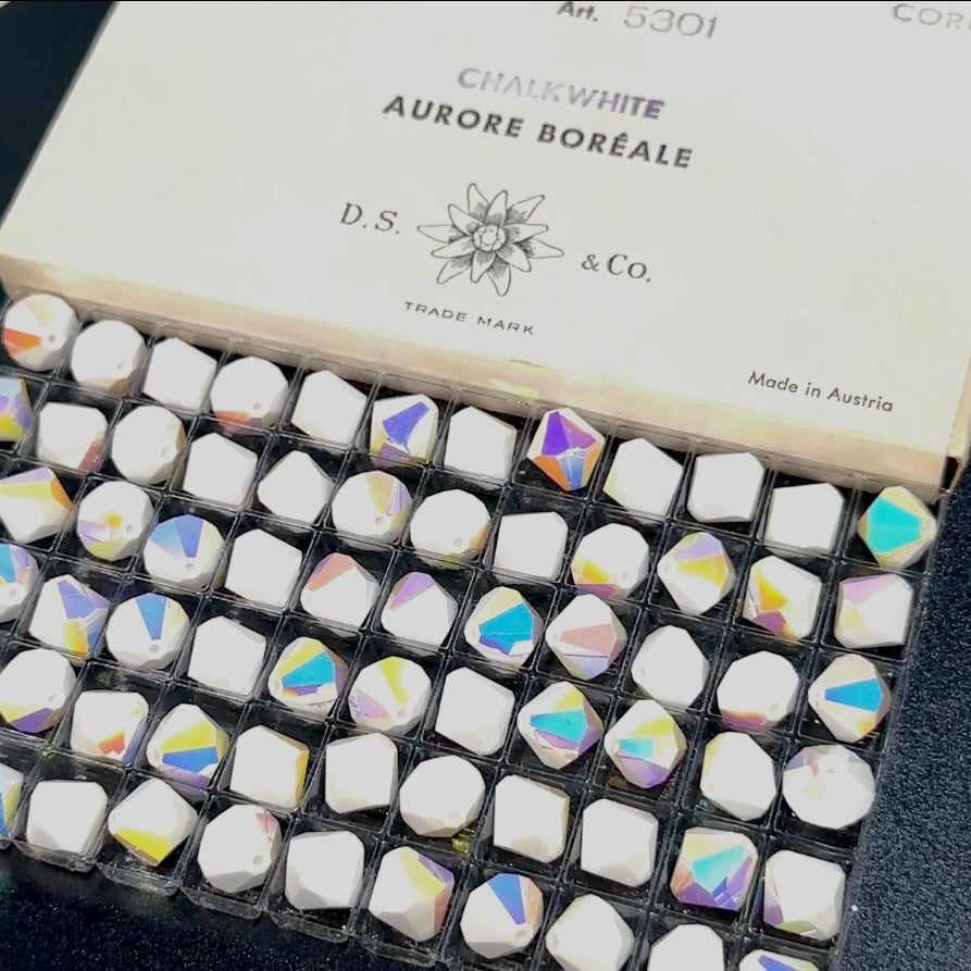 Swarovski Art.# 5301 - 10mm Vintage ChalkWhite AB Bicone Crystal Beads 72 pcs SW232