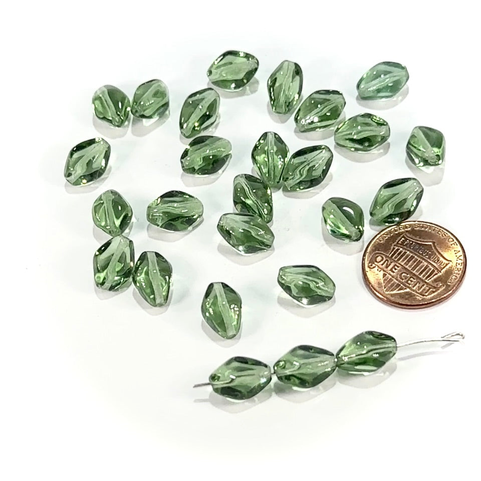 Czech Pressed Druk Fancy Glass Beads 11x7mm Green Turmaline 25 pieces CL951