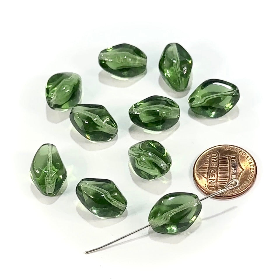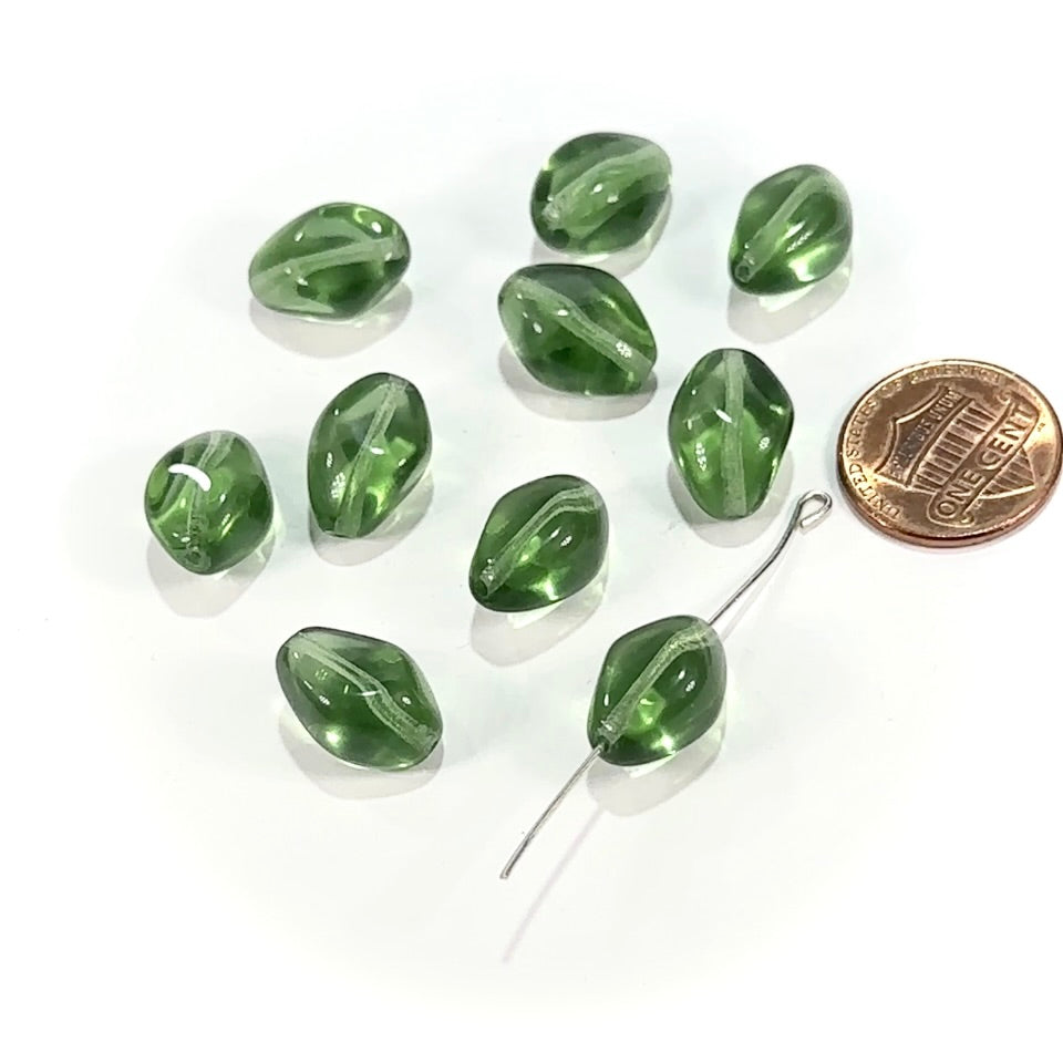Czech Pressed Druk Fancy Glass Beads 15x11mm Green Turmaline 10 pieces CL979