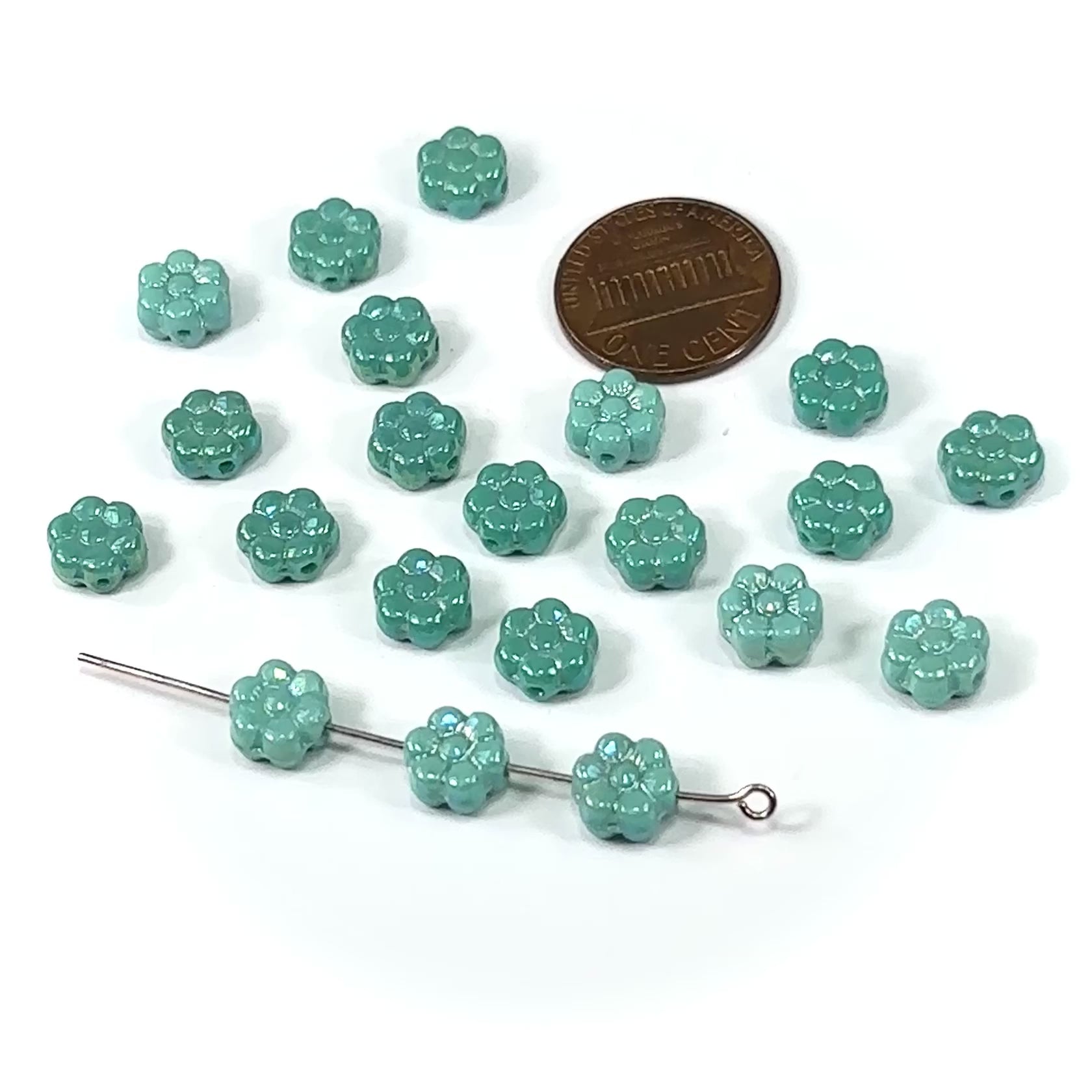 Czech Pressed Druk Glass Beads Flower with Center Hole 8mm Turquoise AB coated 20 pieces CL037