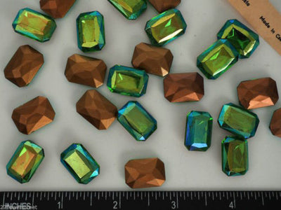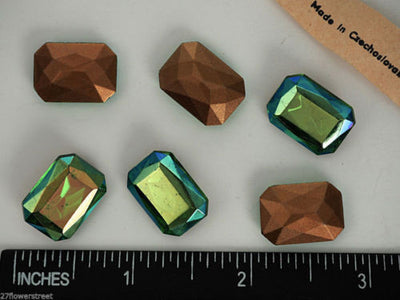 6 Vintage Czechoslovakian Glass Table Cut Octagons 18x13mm Peridot AB, P04 green
