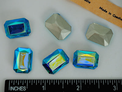 6 Vintage Czechoslovakian Glass Table Cut Octagons 18x13mm Aqua Bohemica AB, P10