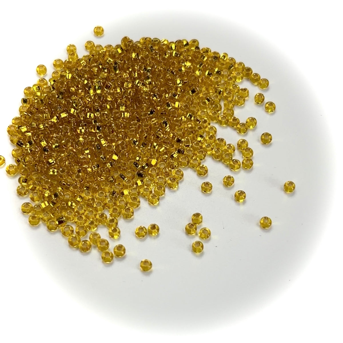 Rocailles size 8/0 (3mm) Citrine Yellow with Square Hole Silver Lined, Preciosa Ornela Traditional Czech Glass Seed Beads, 30grams (1 oz), J201
