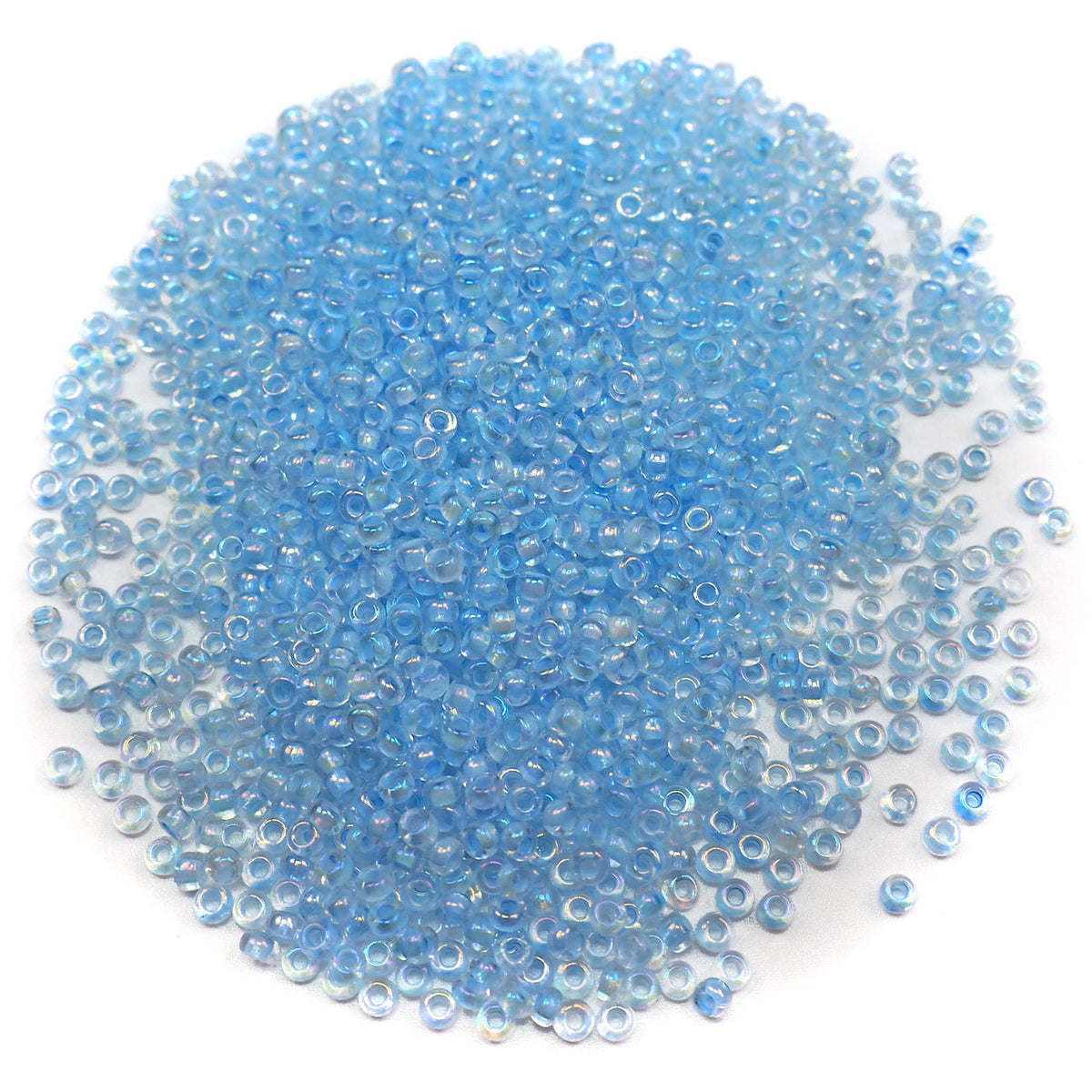 Rocailles size 9/0 (2.6mm) Light Blue Rainbow Lined, Preciosa Ornela Traditional Czech Glass Seed Beads, 30grams (1 oz), P928