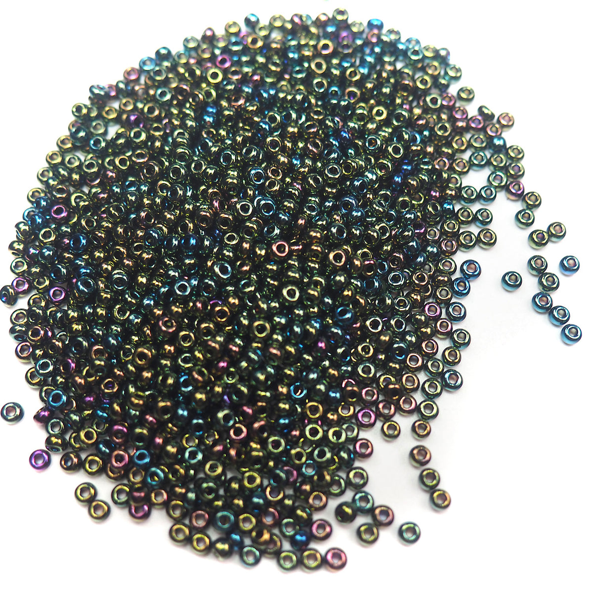 Rocailles size 9/0 (2.6mm) Green Iris Metallic, Preciosa Ornela Traditional Czech Glass Seed Beads, 30grams (1 oz), P935