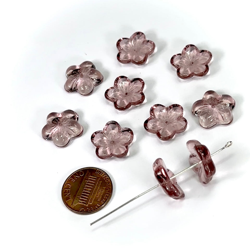 Czech Pressed Druk Flower Center Drilled Glass Beads Amethyst Purple 16mm 10pcs CL680