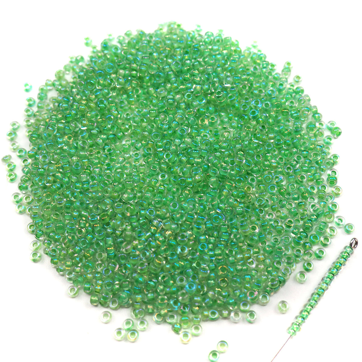 Rocailles size 9/0 (2.6mm) Light Green Rainbow Lined, Preciosa Ornela Traditional Czech Glass Seed Beads, 30grams (1 oz), P924
