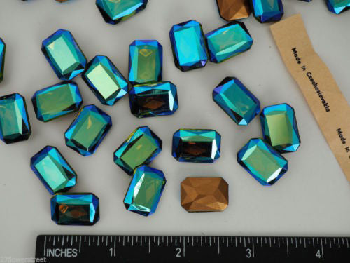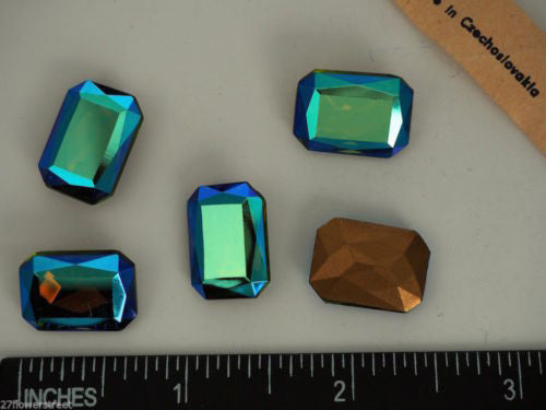 6 Vintage Czechoslovakian Glass Table Cut Octagons 18x13mm Light Siam AB, P06