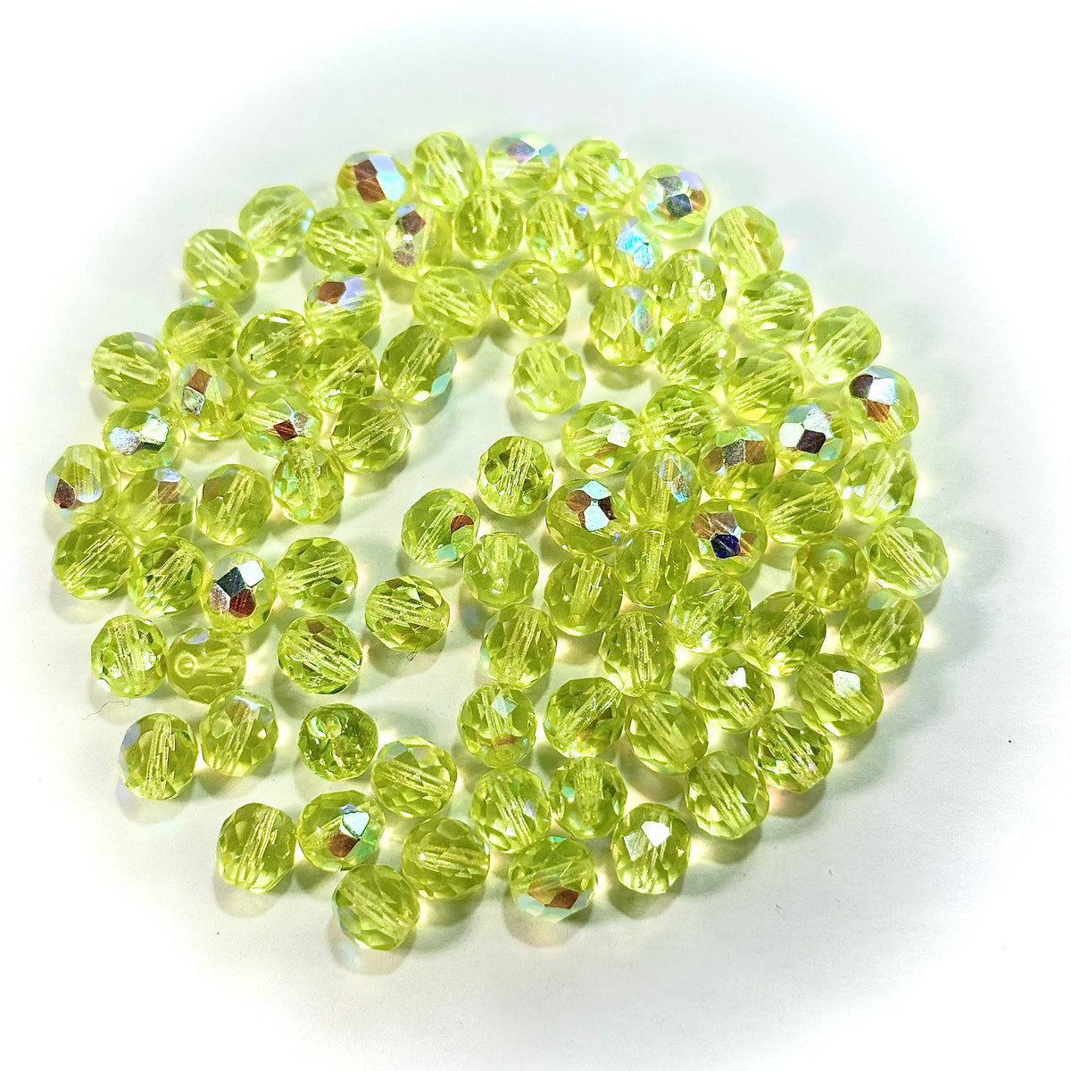 Machine faceted glass beads that are polished by fire. They are brilliant, scratch resistant and with softer, slightly rounded facets. Cost effective, superior quality beads. These beads are usually produced in smaller batches, therefore color, size and shape may vary slightly.