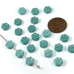 Czech Pressed Druk Glass Beads Flower with Center Hole 8mm Turquoise AB coated 20 pieces CL037