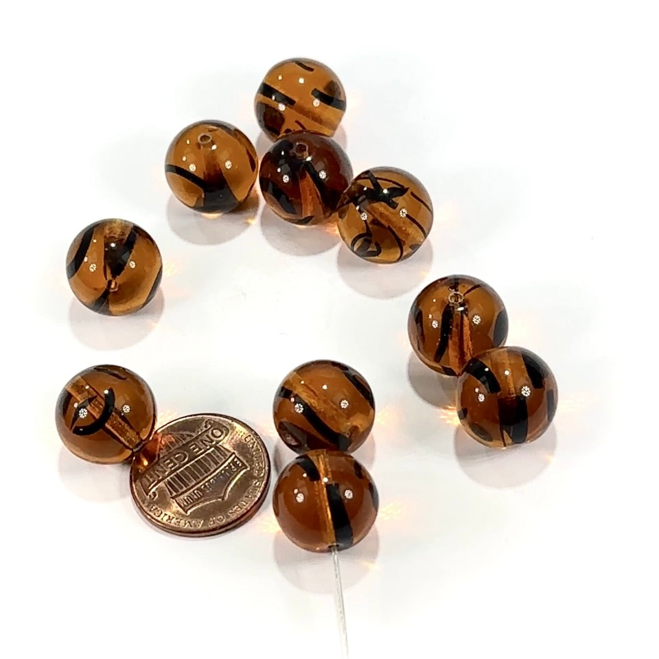 Czech Pressed Druk Round Smooth Glass Beads 14mm Brown Tortoise 10 pieces CL1004