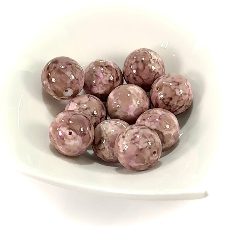 Czech Pressed Druk Round Smooth Glass Beads 14mm Pink Brown Marble Pearlized 10 pieces CL1139