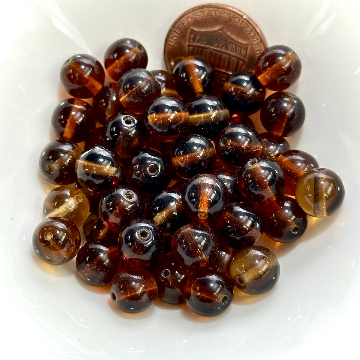 Czech Pressed Druk Round Smooth Glass Beads 8mm Madeira Dark Topaz 50 pieces CL401