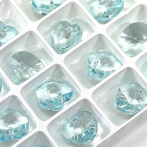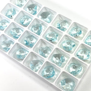 Crystal Light Blue Preciosa Genuine Czech Crystals 1-Hole Top Drilled Heart Pendants 14mm 6pcs J136