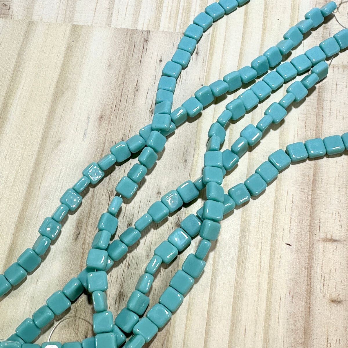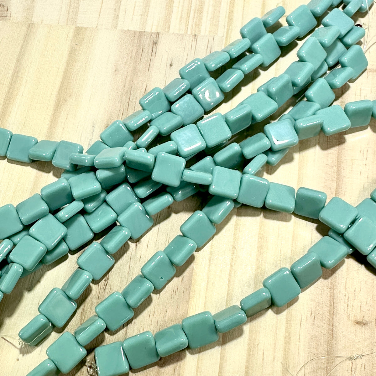Czech Pressed Druk Flat Square Glass Beads 6x6mm Green Turquoise 27pcs J906