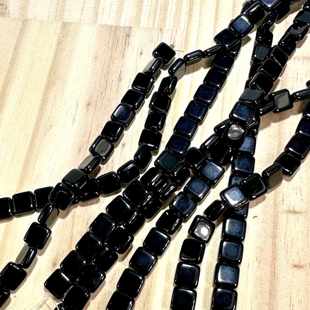 Czech Pressed Druk Flat Square Glass Beads 6x6mm Jet black 27pcs J907
