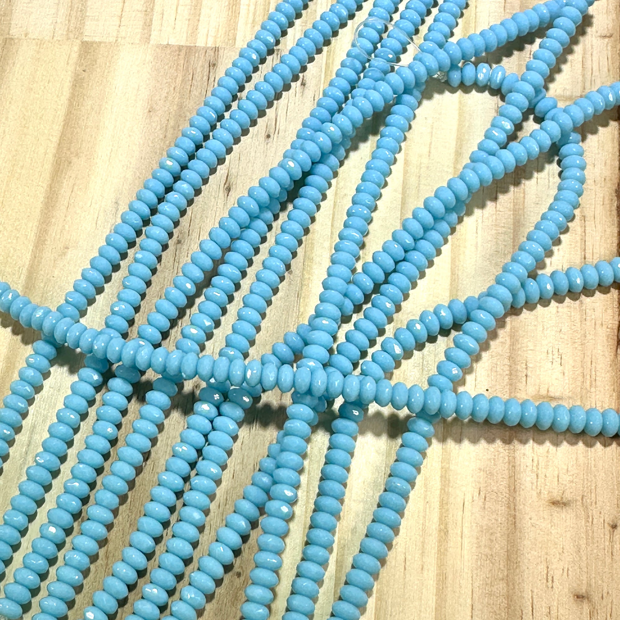 Czech Faceted Glass Doughnut Shaped Fire Polished Rondelle Spacer Beads 3x5mm Blue Turquoise opaque tire/donut beads 58pcs J880