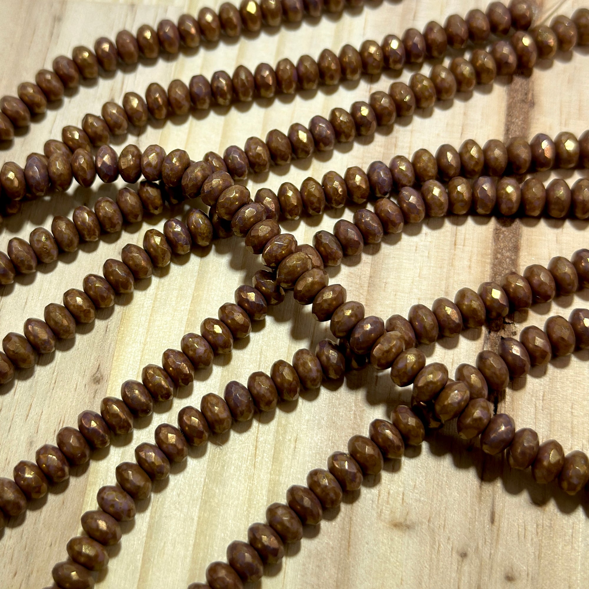 Czech Faceted Glass Doughnut Shaped Fire Polished Rondelle Spacer Beads 4x7mm Bronze Fusion tire/donut beads 42pcs J813