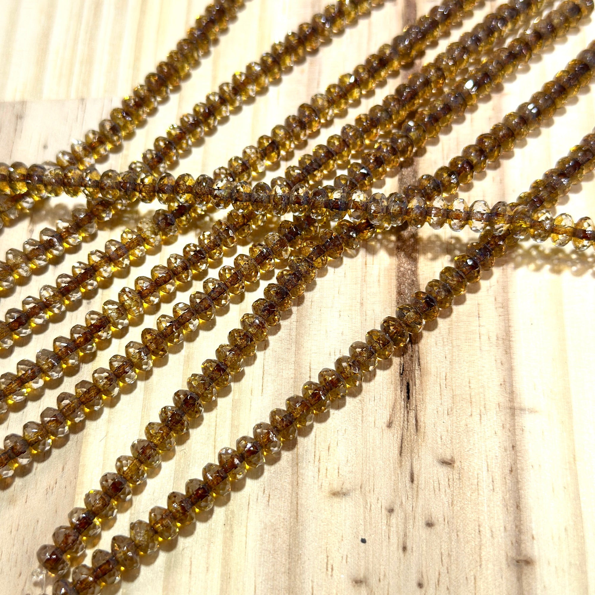 Czech Faceted Glass Doughnut Shaped Fire Polished Rondelle Spacer Beads 4x7mm Crystal Brown Picasso tire/donut beads 42pcs J797