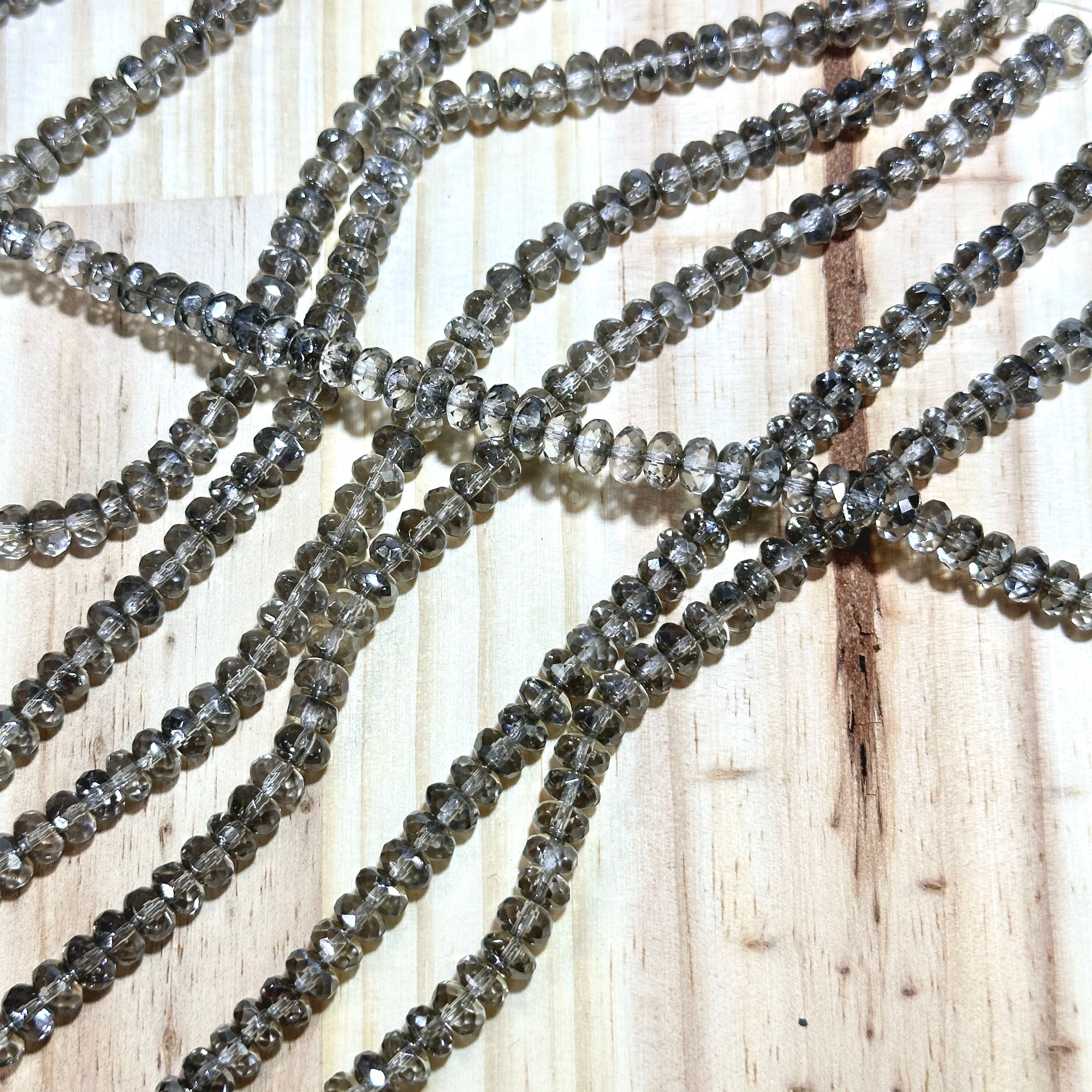 Czech Faceted Glass Doughnut Shaped Fire Polished Rondelle Spacer Beads 4x7mm Crystal Platinum tire/donut beads 42pcs J794