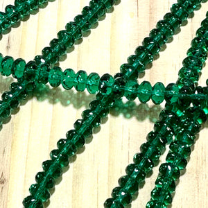 Czech Faceted Glass Doughnut Shaped Fire Polished Rondelle Spacer Beads 4x7mm Emerald green tire/donut beads 42pcs J804