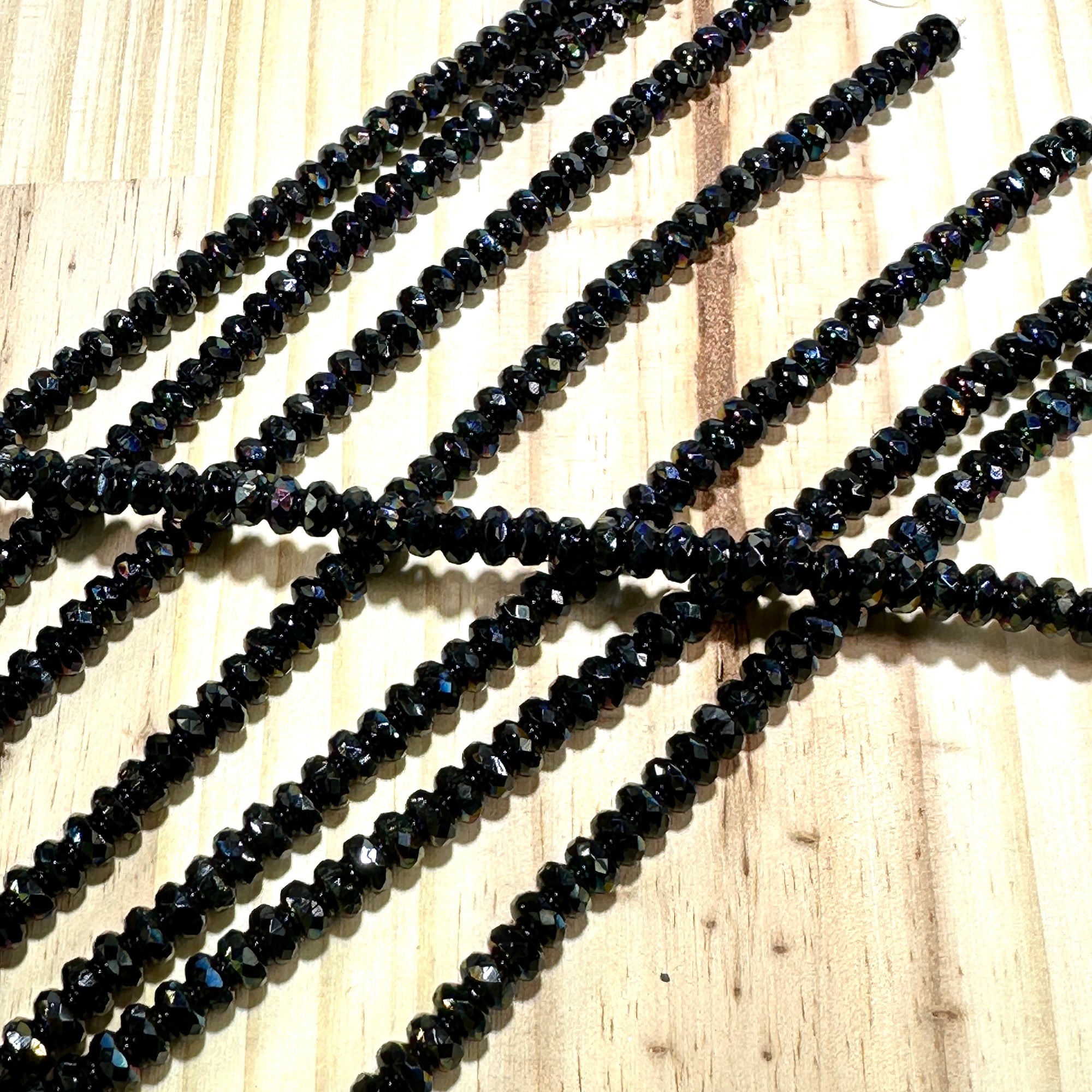 Czech Faceted Glass Doughnut Shaped Fire Polished Rondelle Spacer Beads 4x7mm Jet Celsian tire/donut beads 42pcs J799