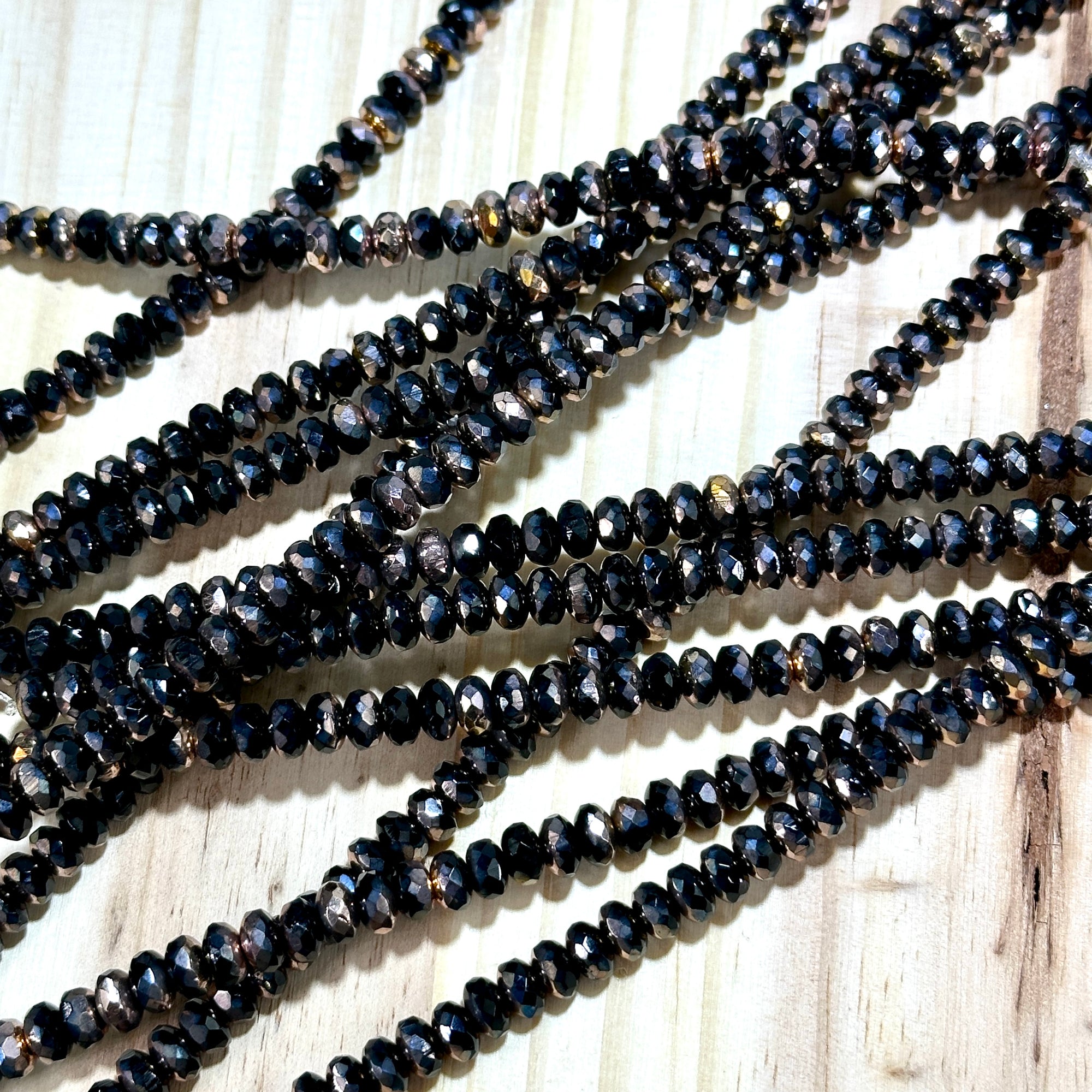 Czech Faceted Glass Doughnut Shaped Fire Polished Rondelle Spacer Beads 4x7mm Jet Copper tire/donut beads 42pcs J782