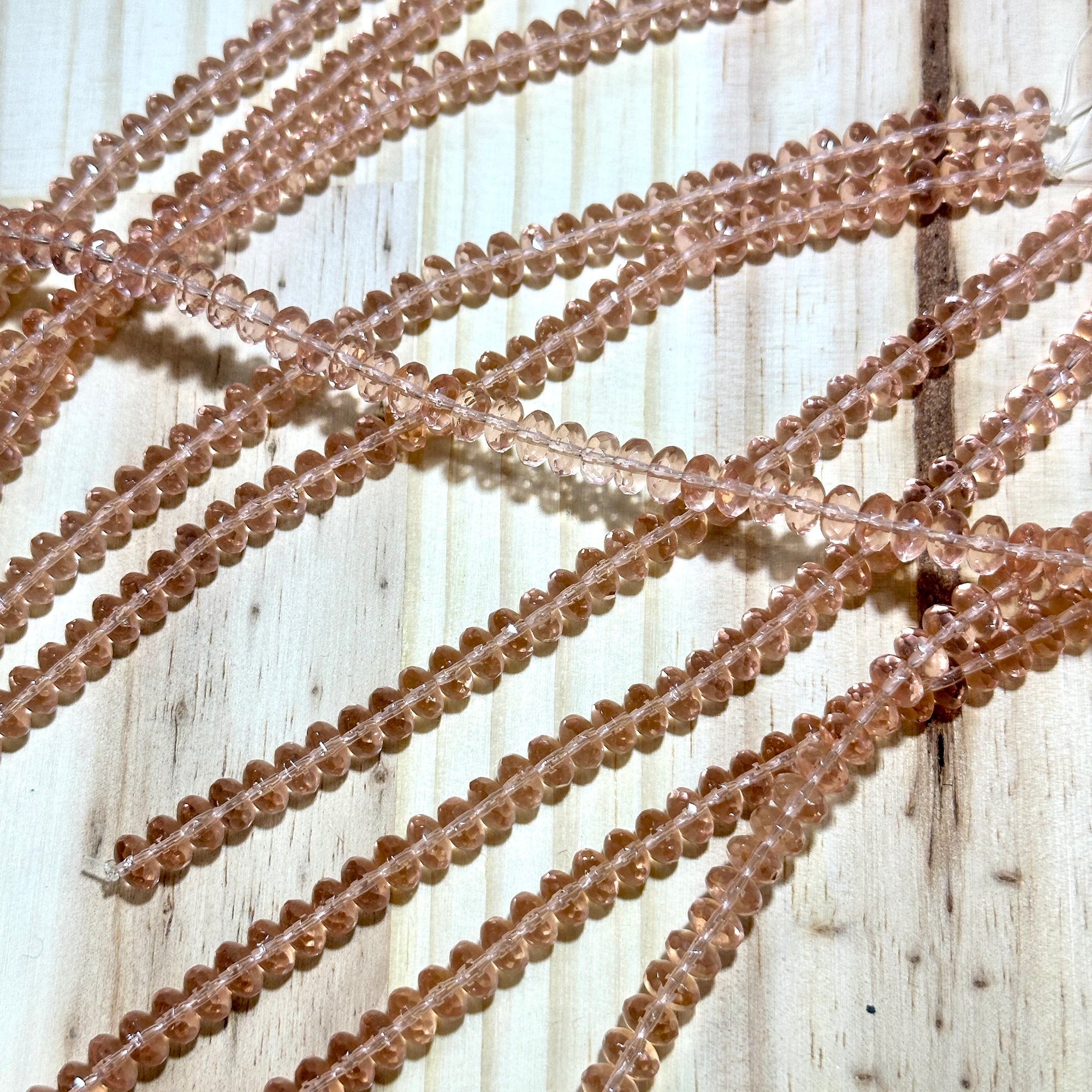 Czech Faceted Glass Doughnut Shaped Fire Polished Rondelle Spacer Beads 4x7mm Light Peach pink tire/donut beads 42pcs J789