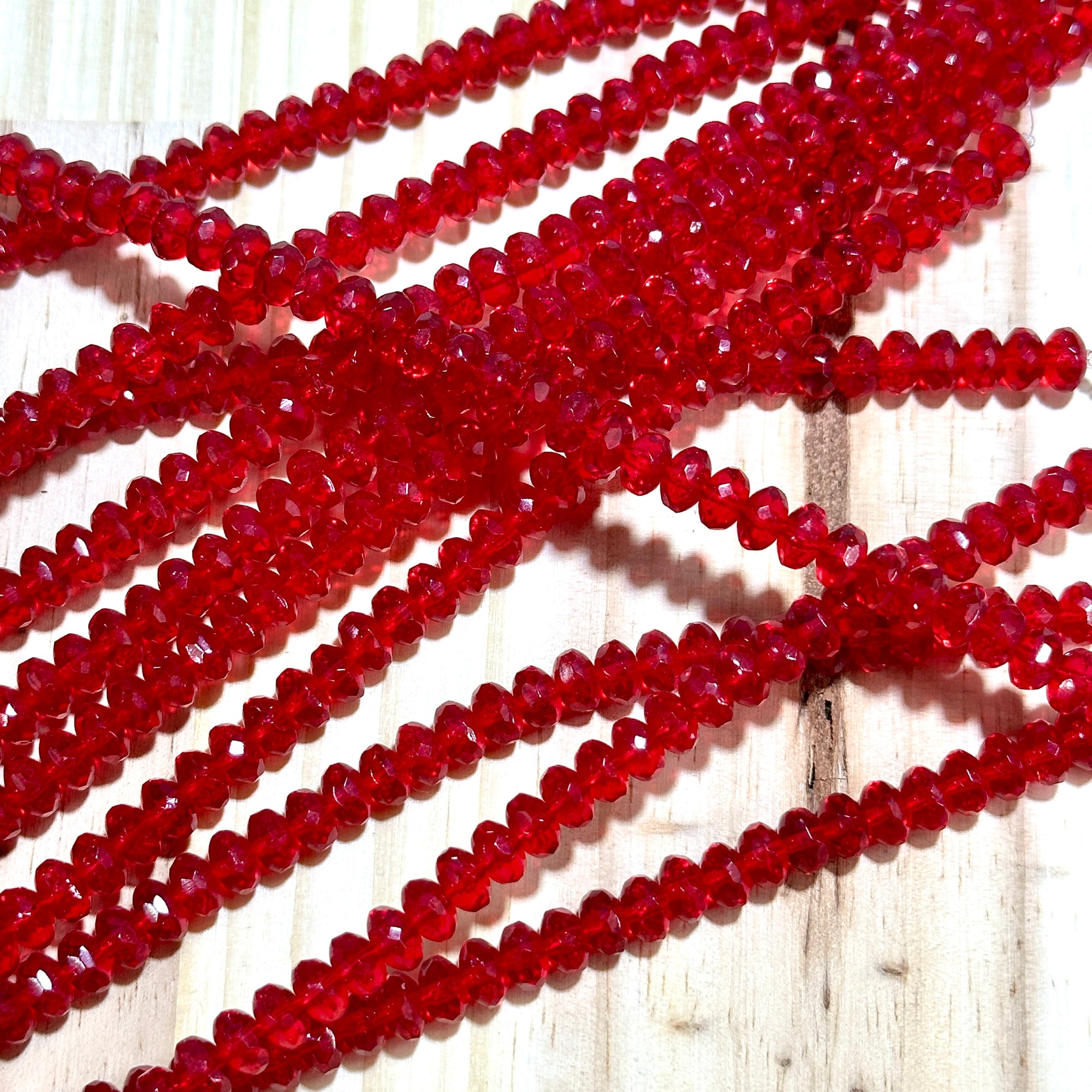 Czech Faceted Glass Doughnut Shaped Fire Polished Rondelle Spacer Beads 4x7mm Light Siam red tire/donut beads 42pcs J788