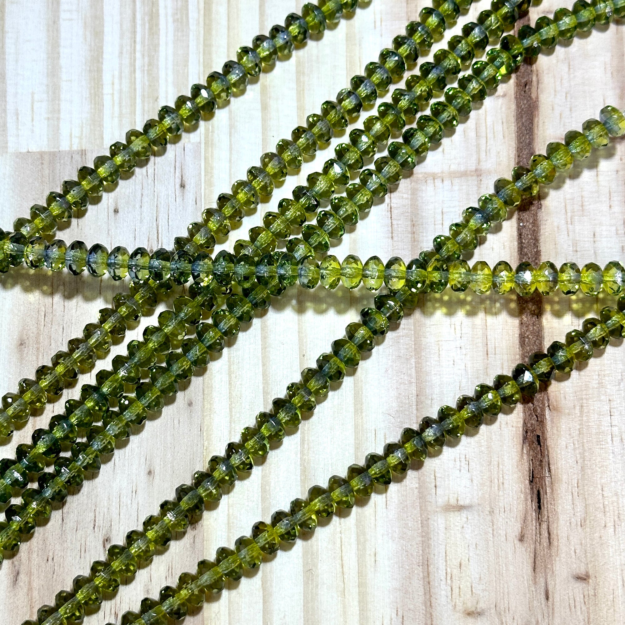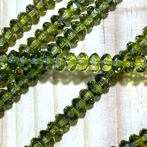 Czech Faceted Glass Doughnut Shaped Fire Polished Rondelle Spacer Beads 4x7mm Olive Capri 2-tone tire/donut beads 42pcs J784
