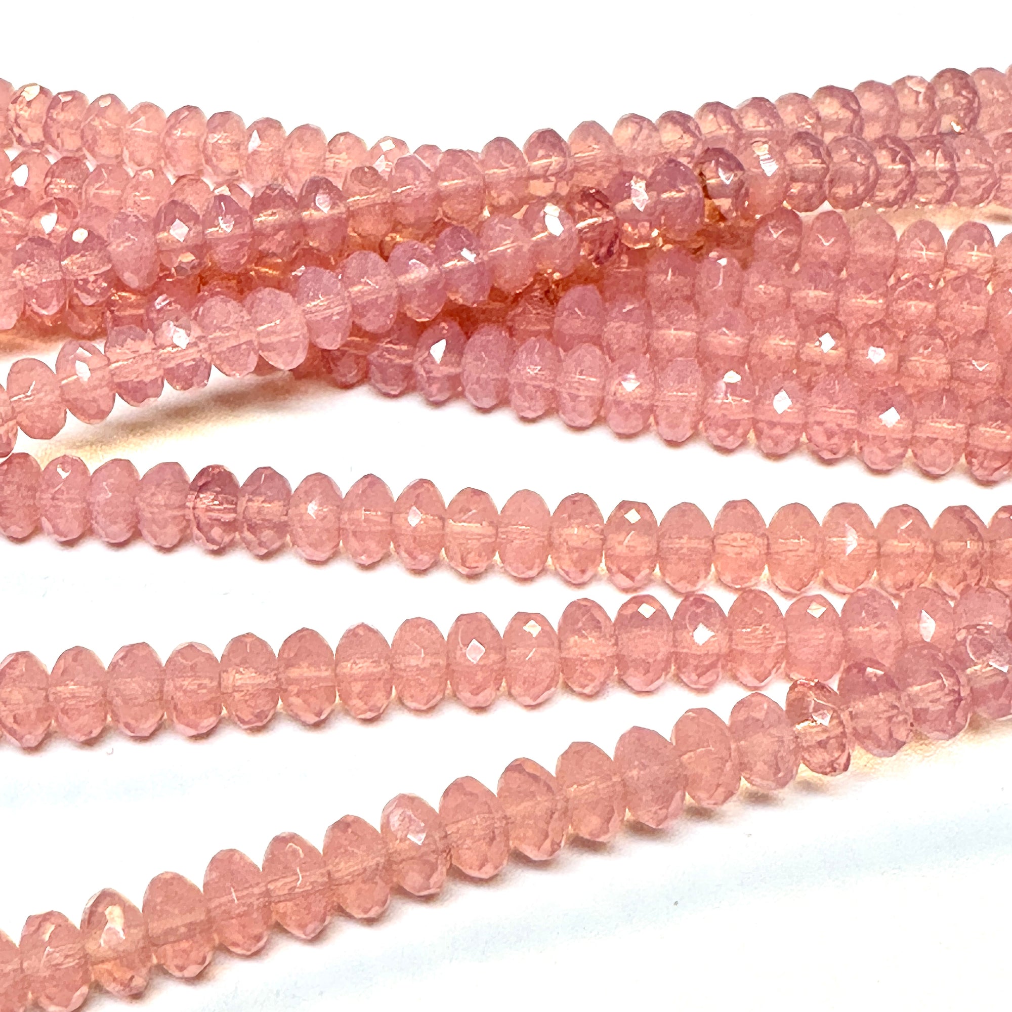 Czech Faceted Glass Doughnut Shaped Fire Polished Rondelle Spacer Beads 4x7mm Rose Opal tire/donut beads 42pcs J778