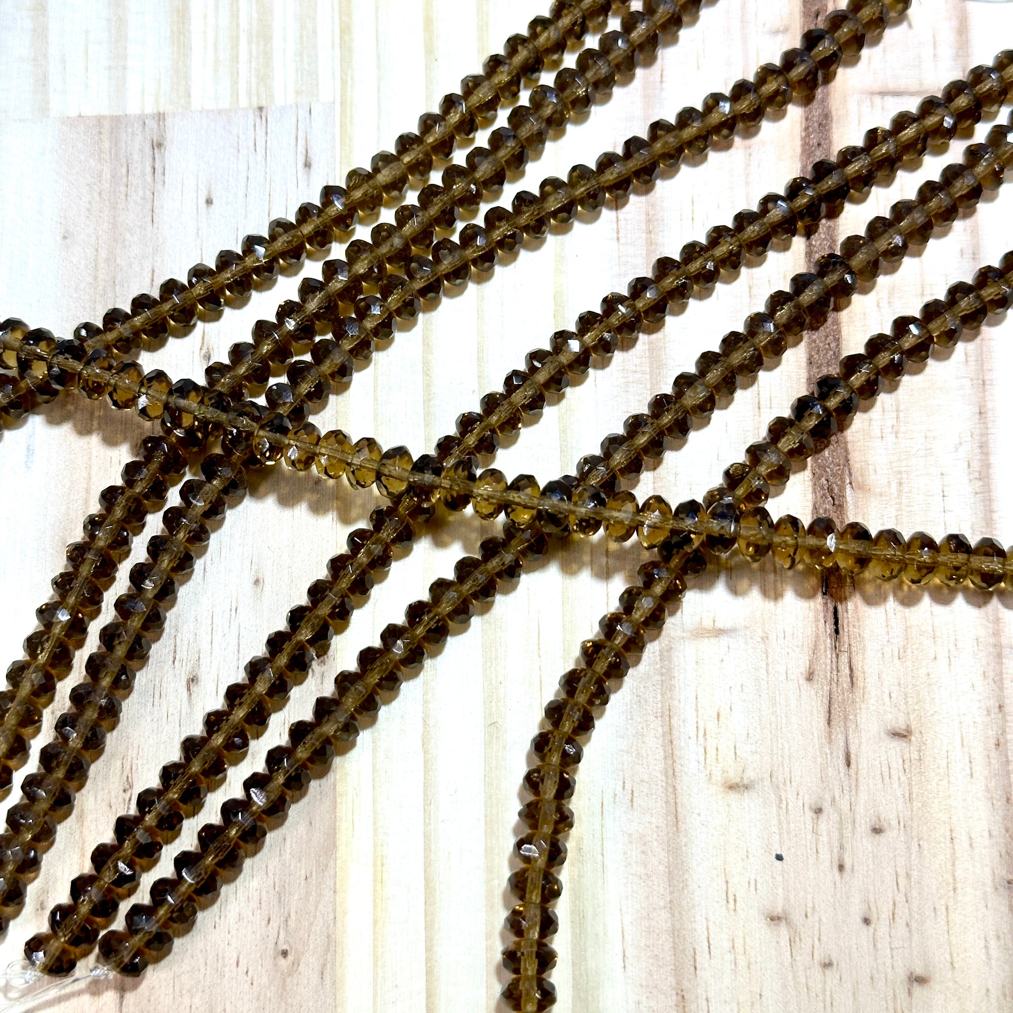 Czech Faceted Glass Doughnut Shaped Fire Polished Rondelle Spacer Beads 4x7mm Smoked Topaz tire/donut beads 42pcs J792