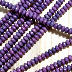 Czech Faceted Glass Doughnut Shaped Fire Polished Rondelle Spacer Beads 4x7mm Violet Opal Luster tire/donut beads 42pcs J785
