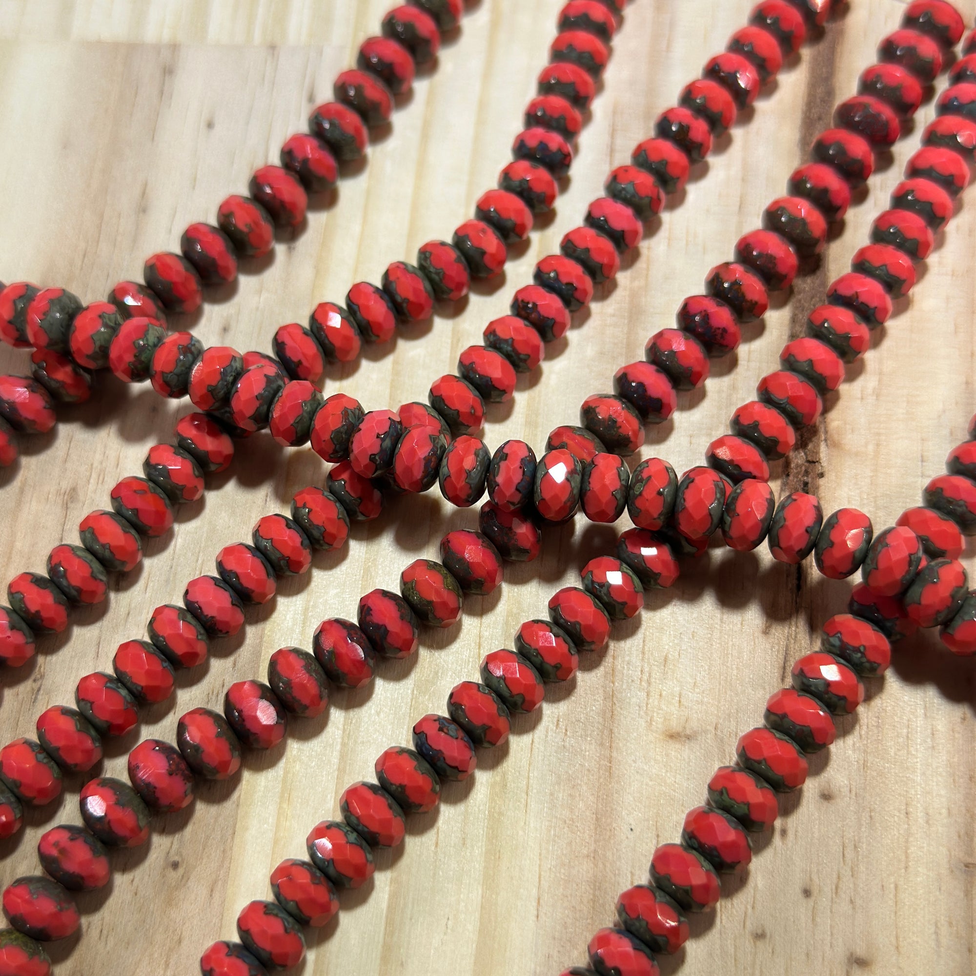 28-30pcs of Czech Glass Donut Rondelle Fire Polished Beads style # 151-00-046