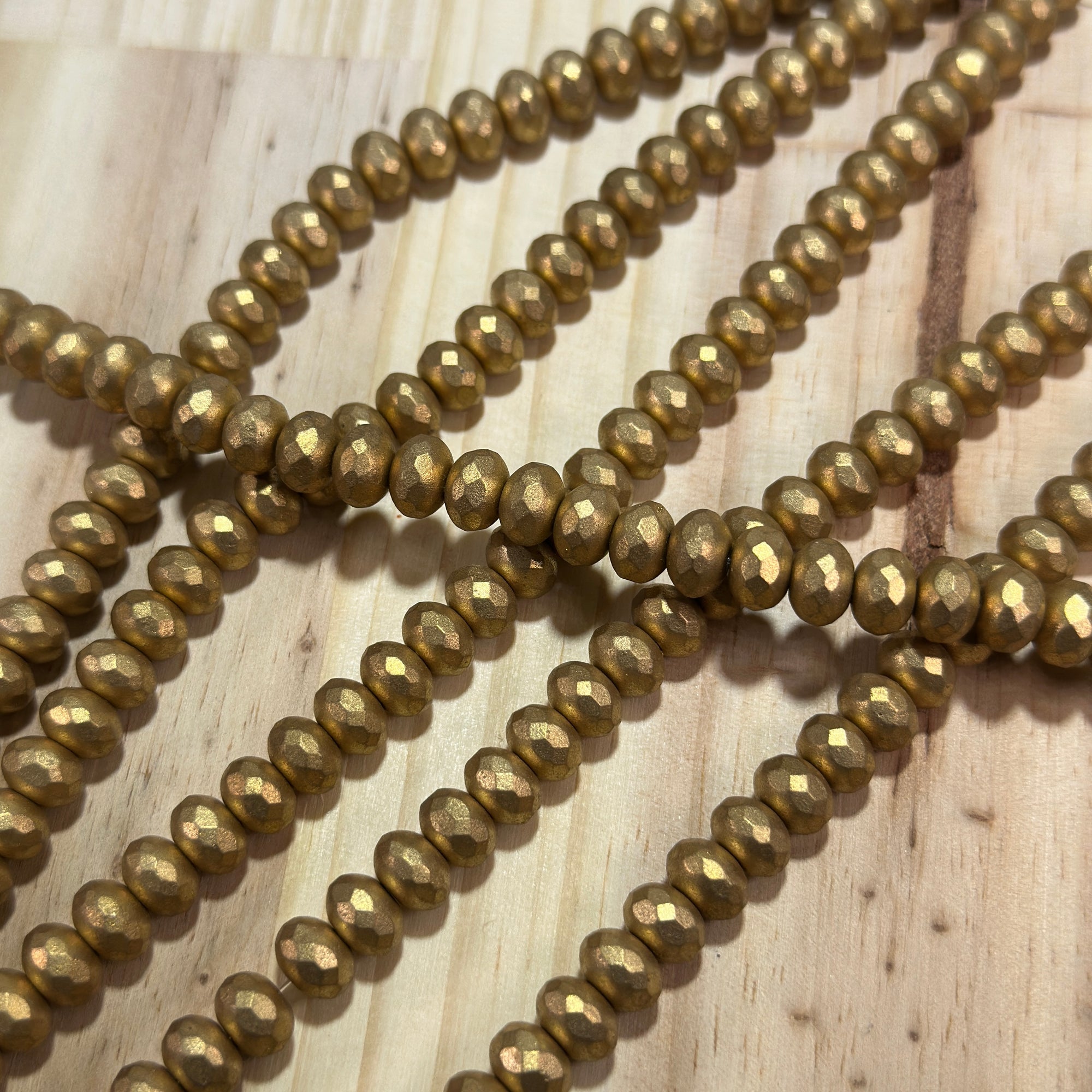 Czech Faceted Glass Doughnut Shaped Fire Polished Rondelle Spacer Beads 6x9mm Matted Gold tire/donut beads 28pcs J817