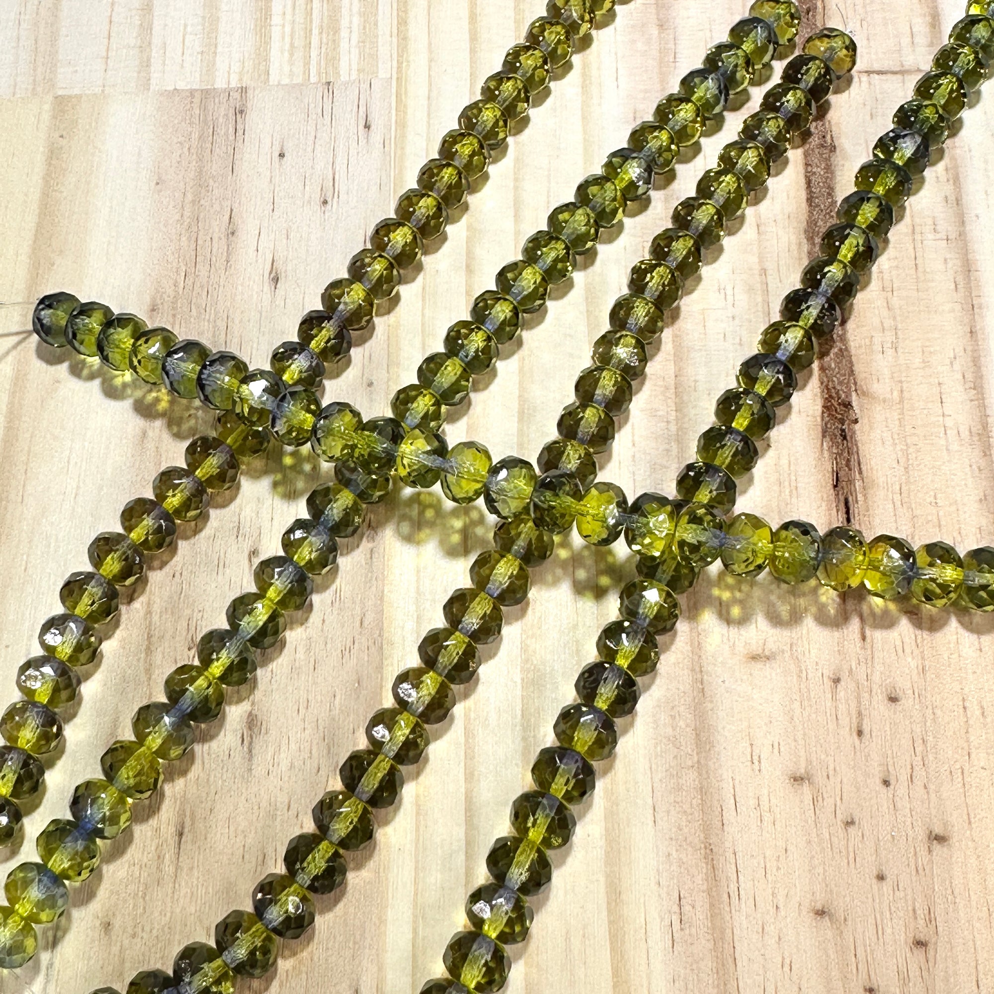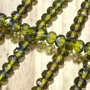 Czech Faceted Glass Doughnut Shaped Fire Polished Rondelle Spacer Beads 6x9mm Olive Capri 2-tone tire/donut beads 28pcs J857