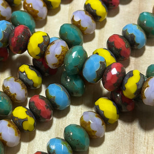 Czech Faceted Glass Doughnut Shaped Fire Polished Rondelle Spacer Beads 6x9mm Picasso Mix tire/donut beads 28pcs J824