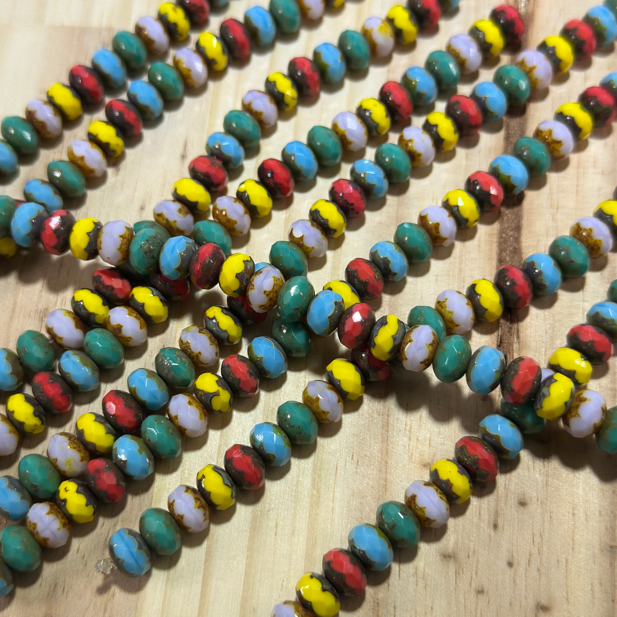 28-30pcs of Czech Glass Donut Rondelle Fire Polished Beads style # 151-00-046