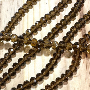 Czech Faceted Glass Doughnut Shaped Fire Polished Rondelle Spacer Beads 6x9mm Smoked Topaz tire/donut beads 28pcs J840