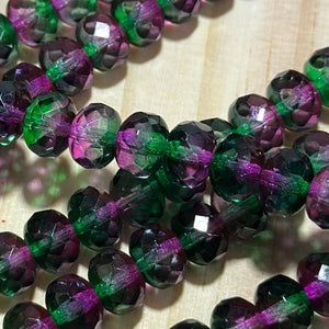 Czech Faceted Glass Doughnut Shaped Fire Polished Rondelle Spacer Beads 6x9mm Thistle 2-tone tire/donut beads 28pcs J816