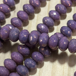 Czech Faceted Glass Doughnut Shaped Fire Polished Rondelle Spacer Beads 6x9mm Violet Opal Luster tire/donut beads 28pcs J829