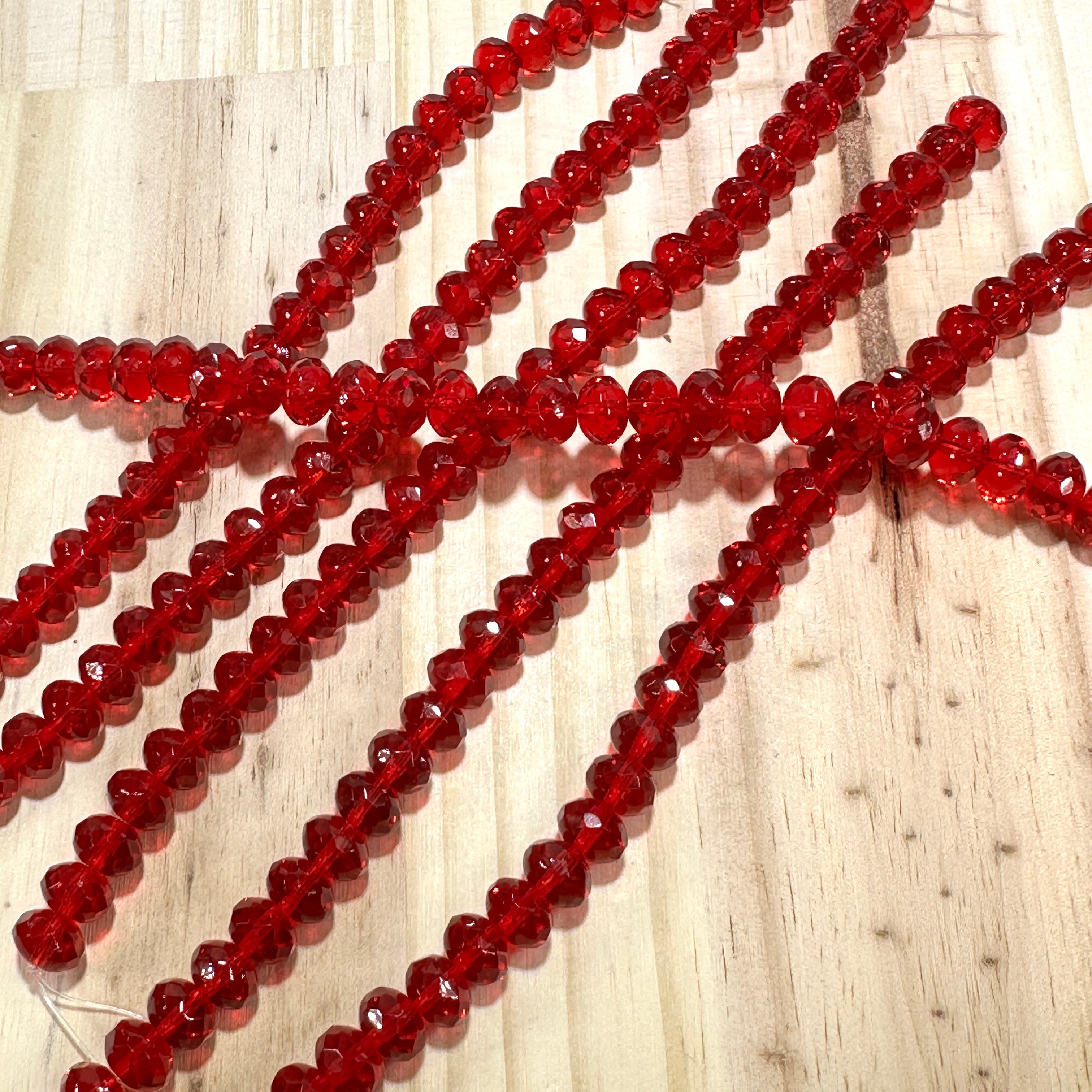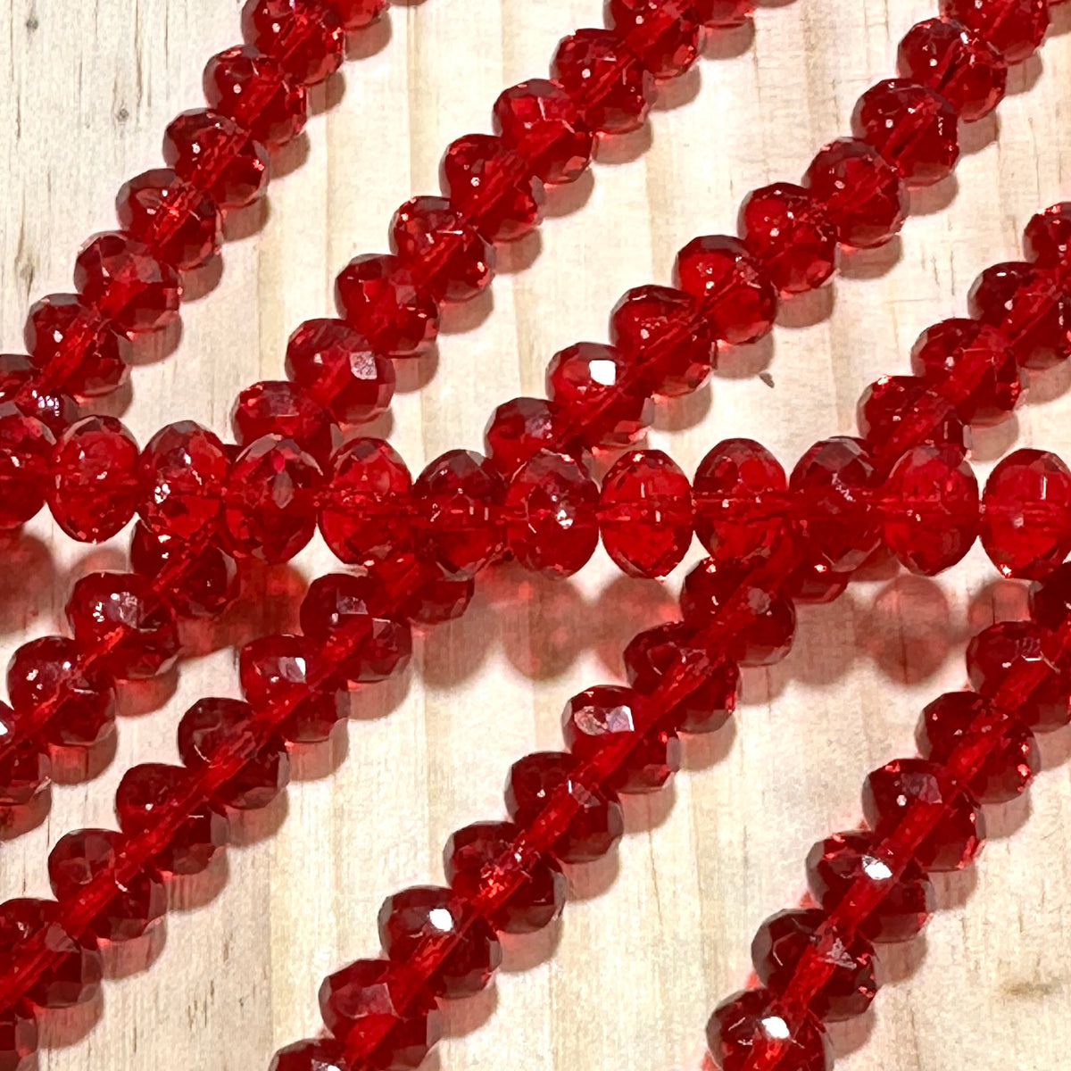Czech Faceted Glass Doughnut Shaped Fire Polished Rondelle Spacer Beads 6x9mm Light Siam red tire/donut beads 28pcs J838