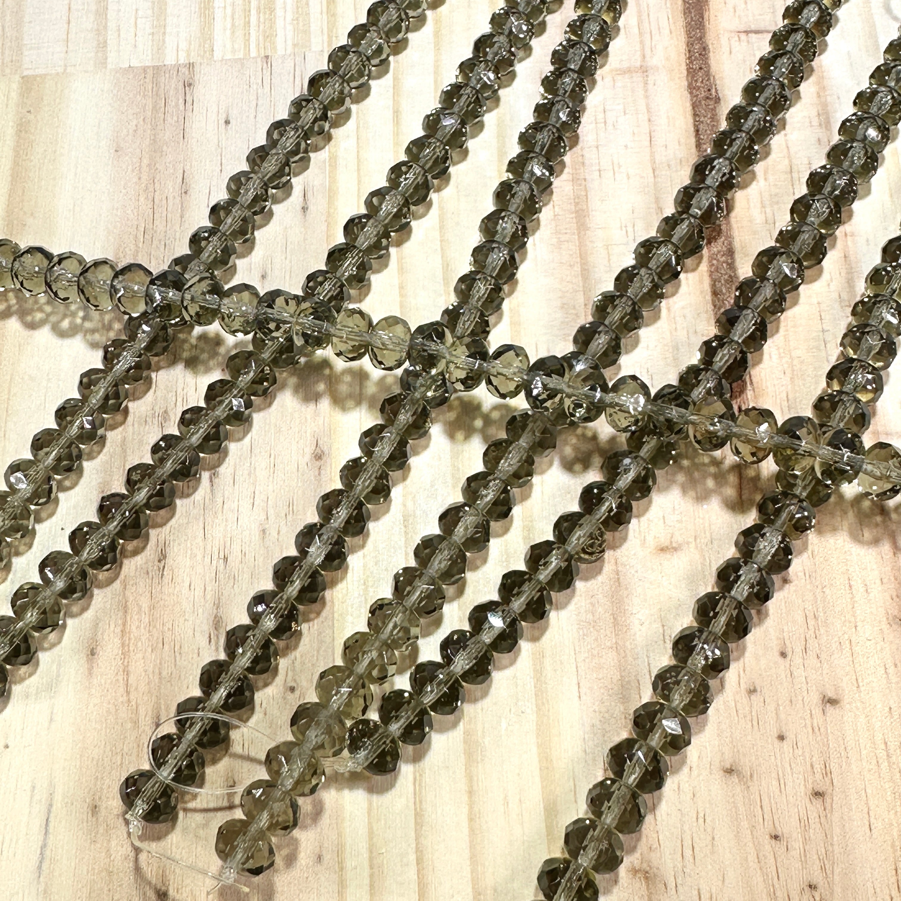 Czech Faceted Glass Doughnut Shaped Fire Polished Rondelle Spacer Beads 6x9mm Smoked Topaz tire/donut beads 28pcs J840