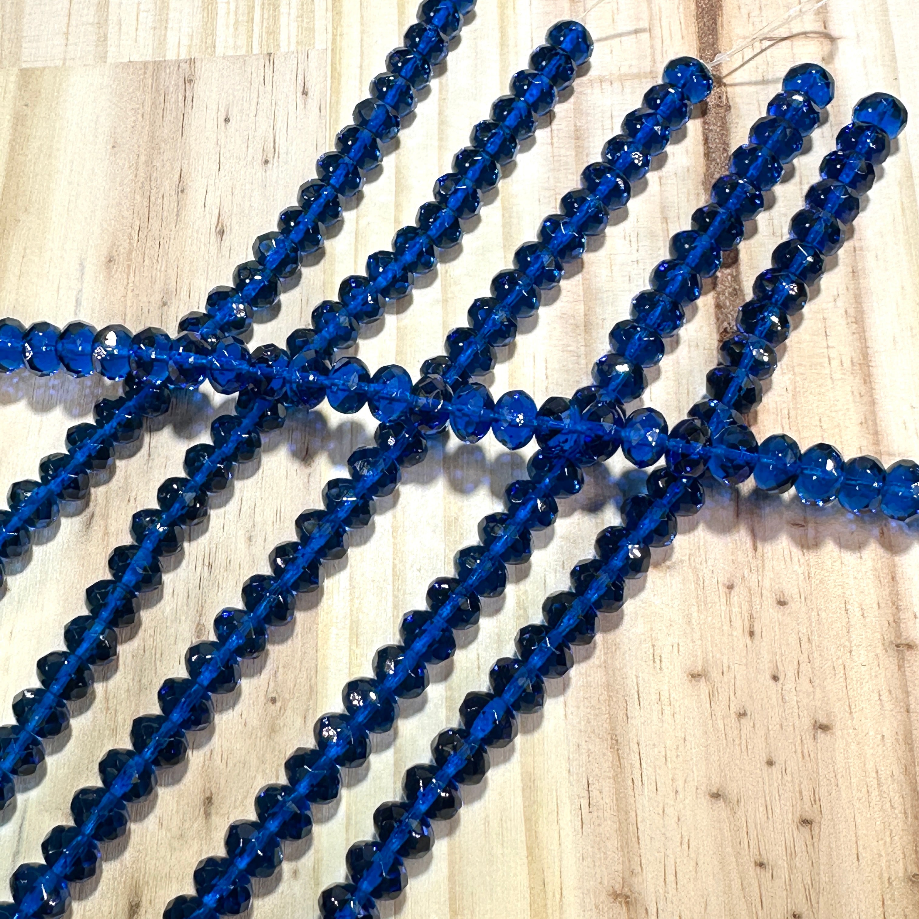 Czech Faceted Glass Doughnut Shaped Fire Polished Rondelle Spacer Beads 6x9mm Sapphire blue tire/donut beads 28pcs J846