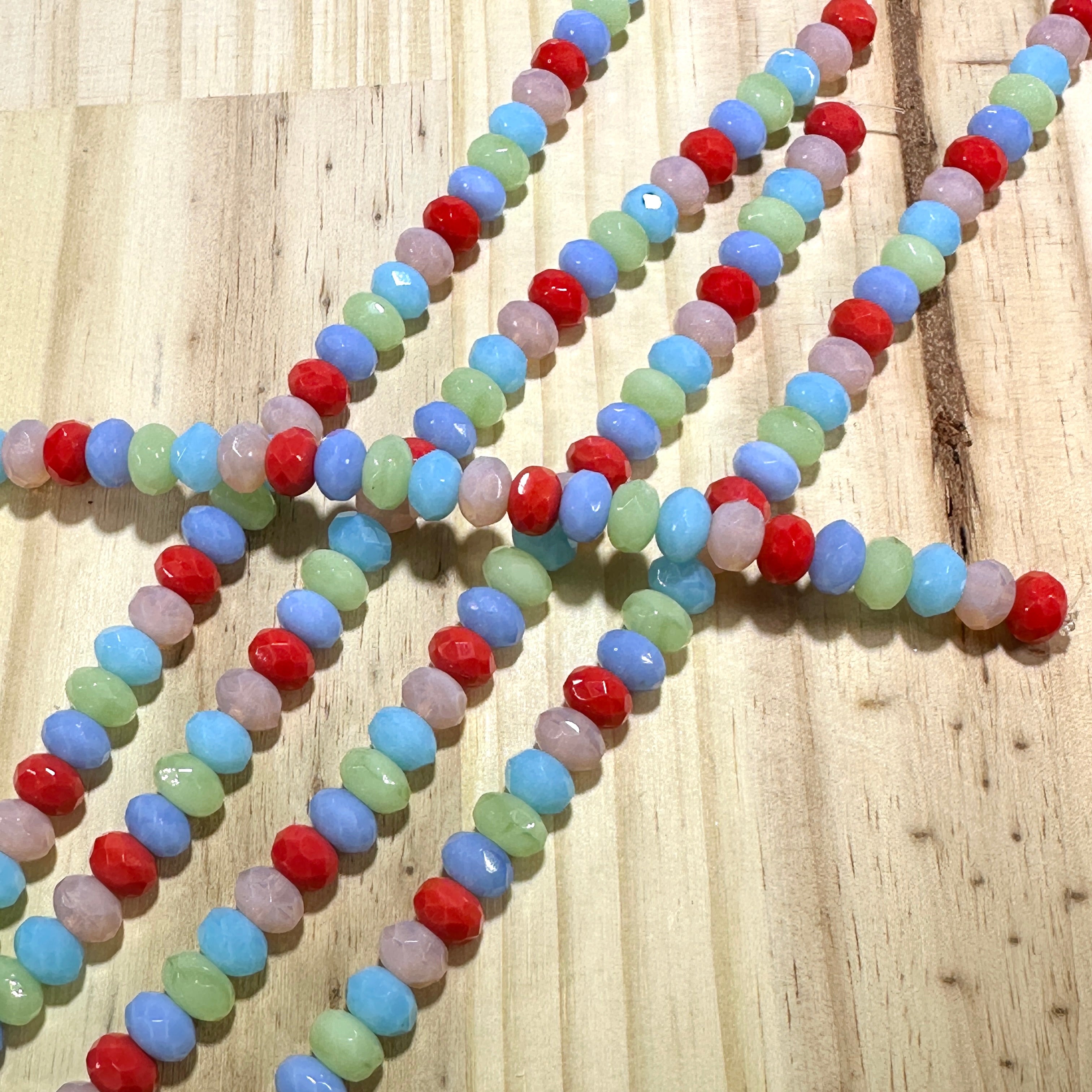 Czech Faceted Glass Doughnut Shaped Fire Polished Rondelle Spacer Beads 6x9mm Opal Mix tire/donut beads 28pcs J848