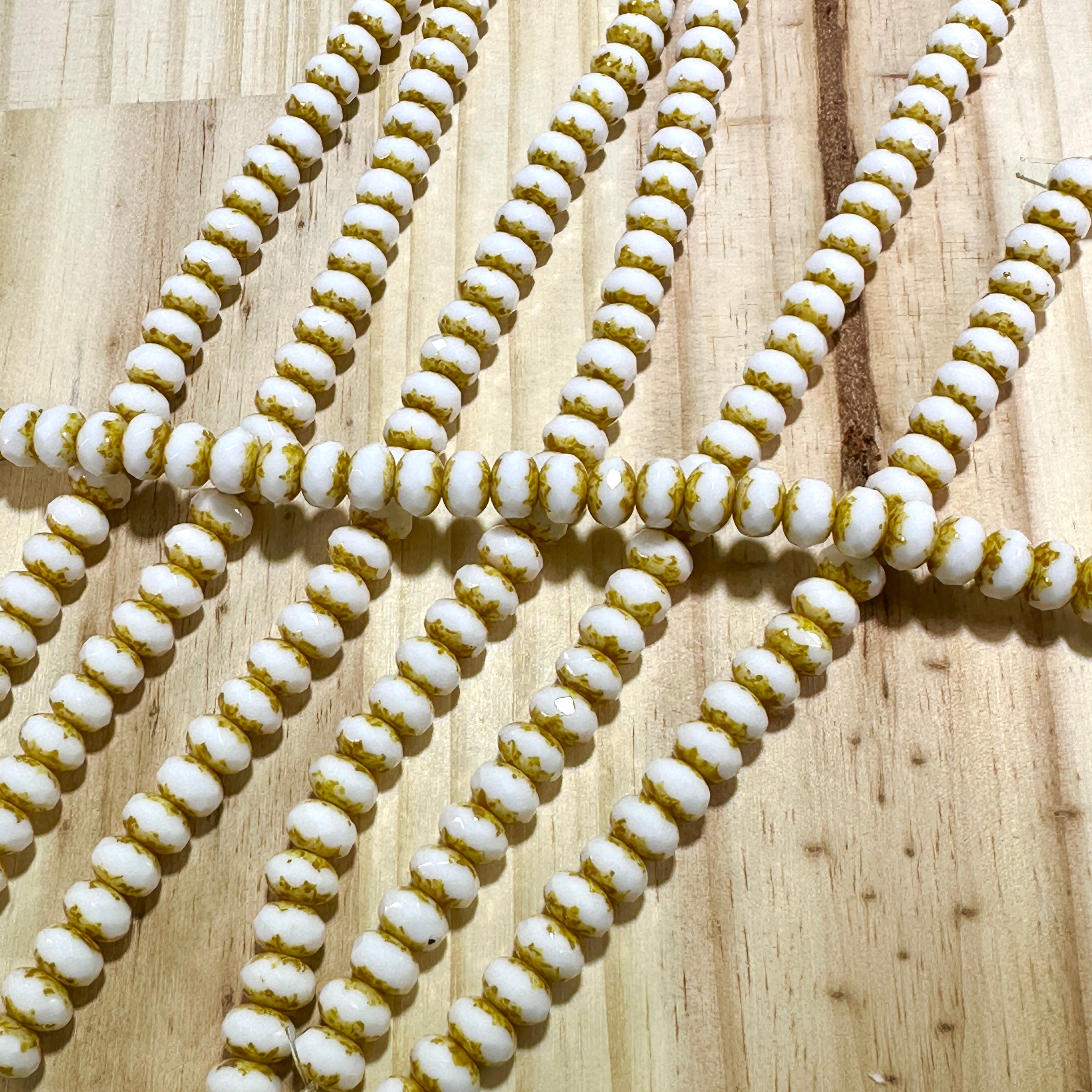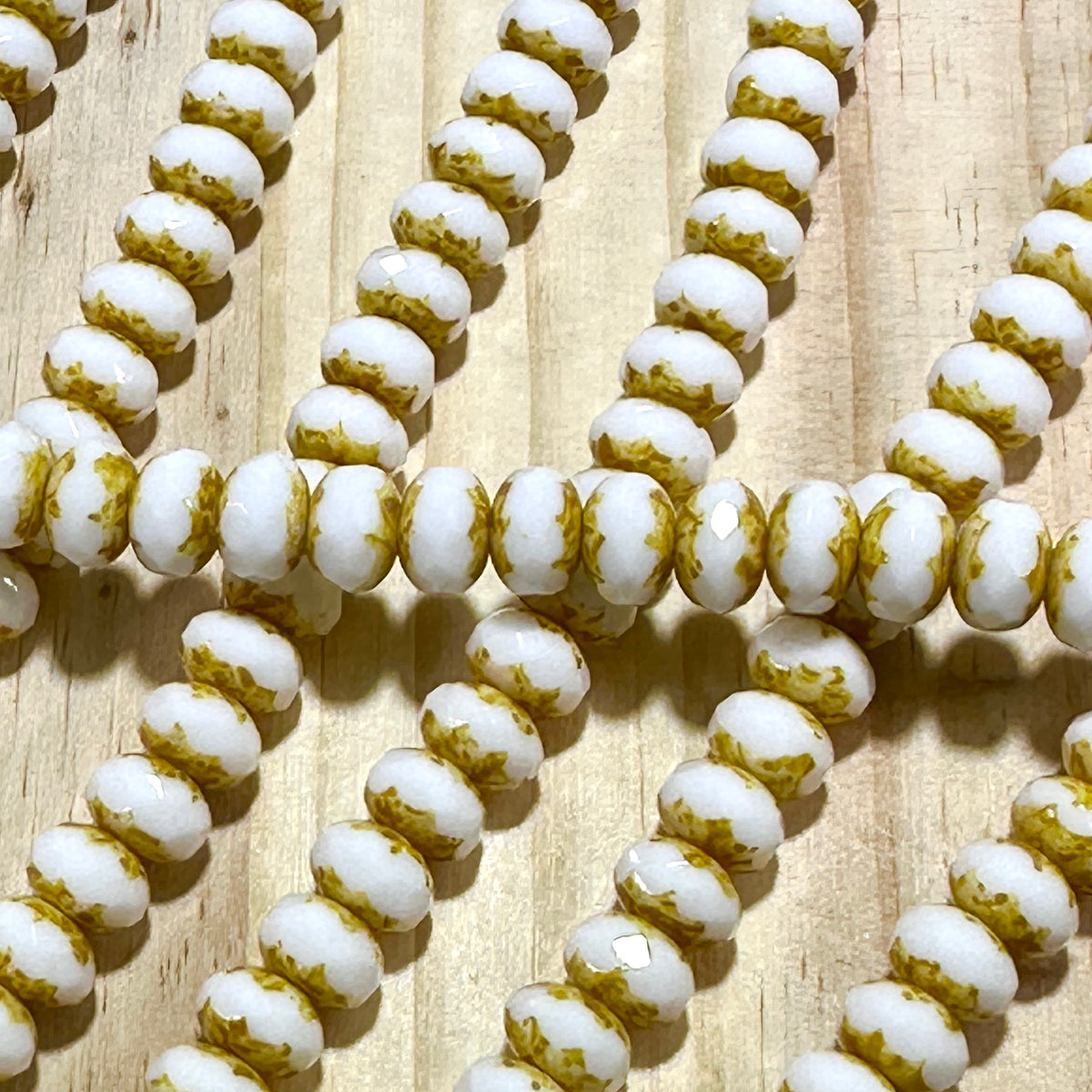 Czech Faceted Glass Doughnut Shaped Fire Polished Rondelle Spacer Beads 6x9mm White Opal milky tire/donut beads 28pcs J855