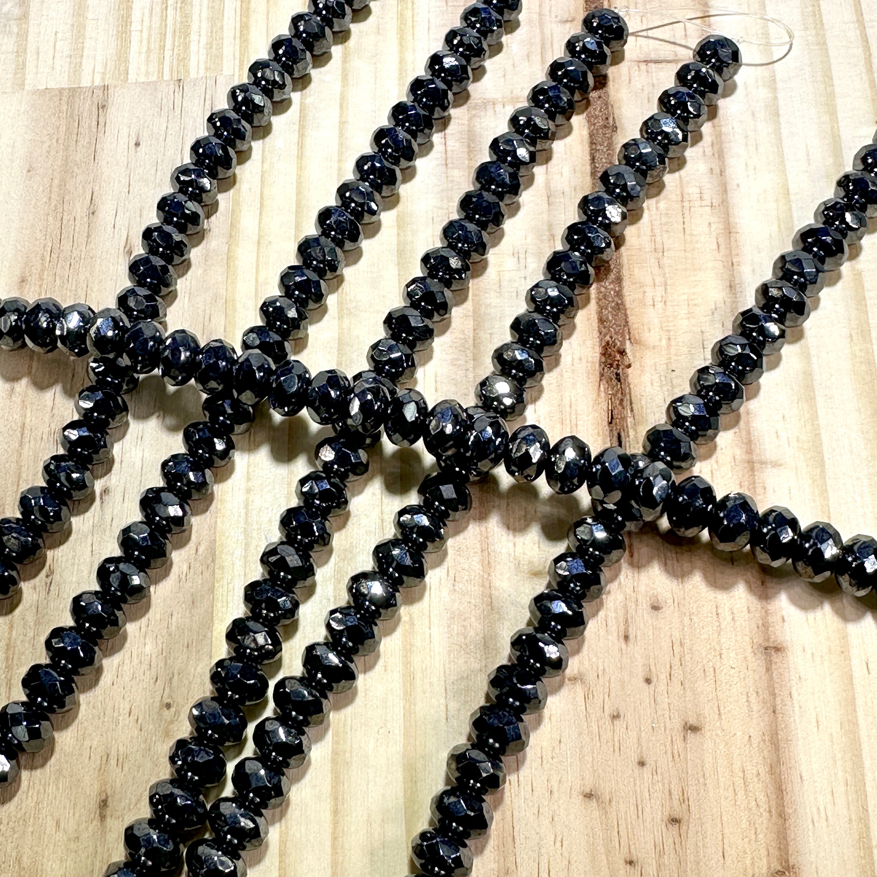Czech Faceted Glass Doughnut Shaped Fire Polished Rondelle Spacer Beads 6x9mm Hematite tire/donut beads 28pcs J853