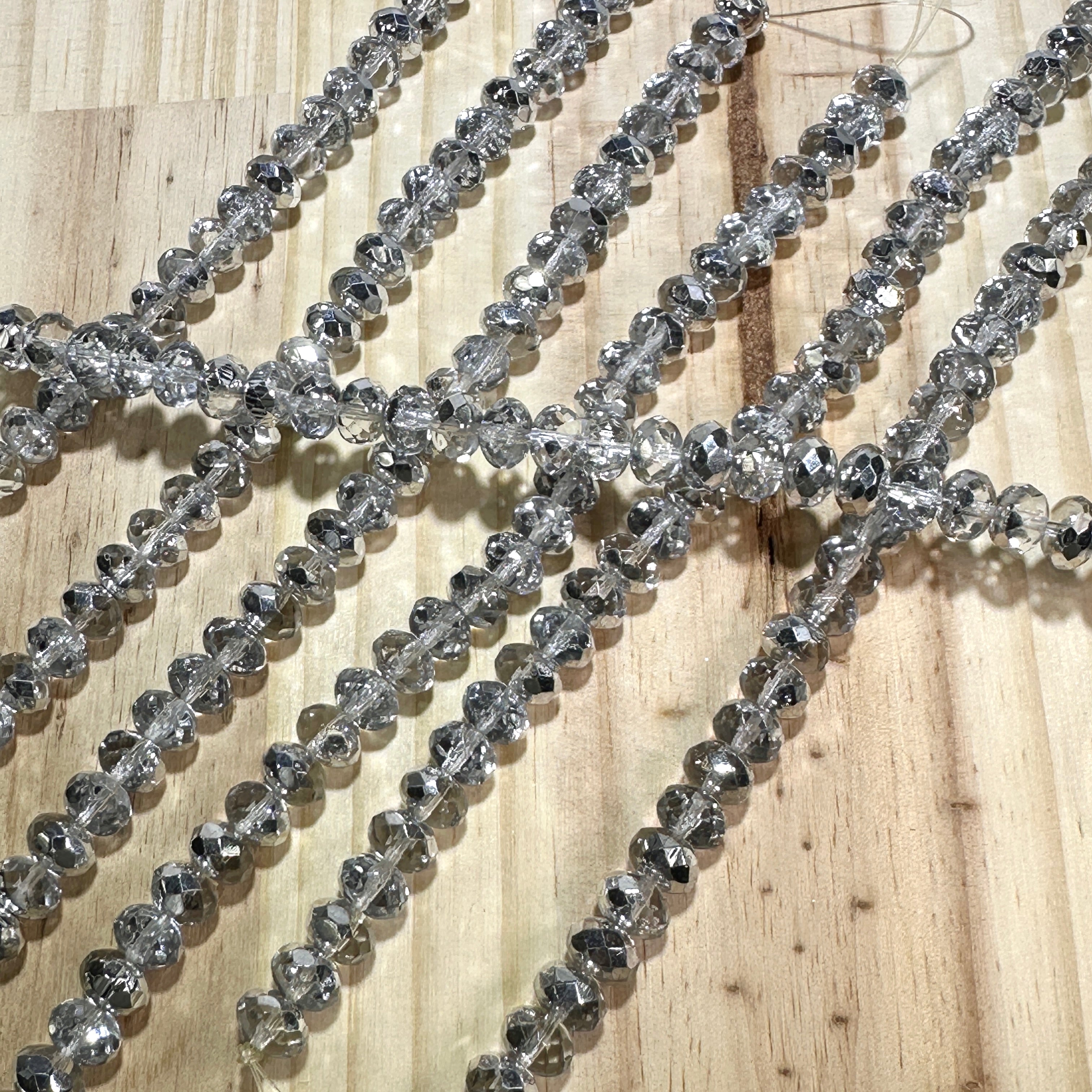 Czech Faceted Glass Doughnut Shaped Fire Polished Rondelle Spacer Beads 3x5mm Crystal Platinum tire/donut beads 59pcs J878